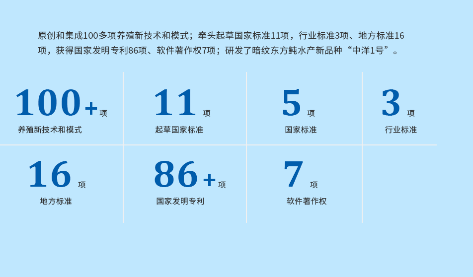 牽手中國科學院水生生物研究所、中國科學院昆明動物研究所、中國科學院上海藥物研究所、中國科學院西北生態環境資源研究院、中國水產科學研究院黃海水產研究所、東海水產研究所、南海水產研究所、淡水漁業研究中心、漁業機械研究所,江蘇省淡水水產研究所、江蘇省海洋水產研究所、江蘇省漁業技術推廣中心,以及中國海洋大學、上海海洋大學、浙江大學、河海大學、大連海洋大學、南京師范大學、華東師范大學、江蘇海洋大學、華東理工大學、華南農業大學、華中農業大學、廈門大學、天津農學院等高等院校和科研機構,原創和集成了大量的專利和科技成果。