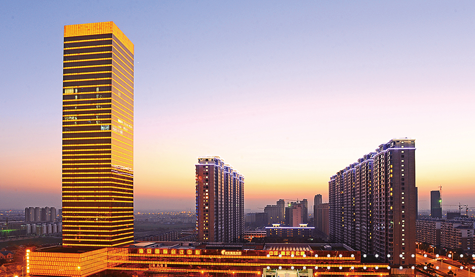 總建筑面積12萬平方米,高度200米,裙樓長200米,主樓頂層設有直升機停機坪。酒店建設在科技、生態、人文、藝術,尤其在生態節能環保功能上亮點紛呈,是一個集高端酒店功能、大型餐飲功能、綜合婚慶功能、大中型會務功能、各類演藝功能和旅游目的地功能為一體的酒店綜合體。